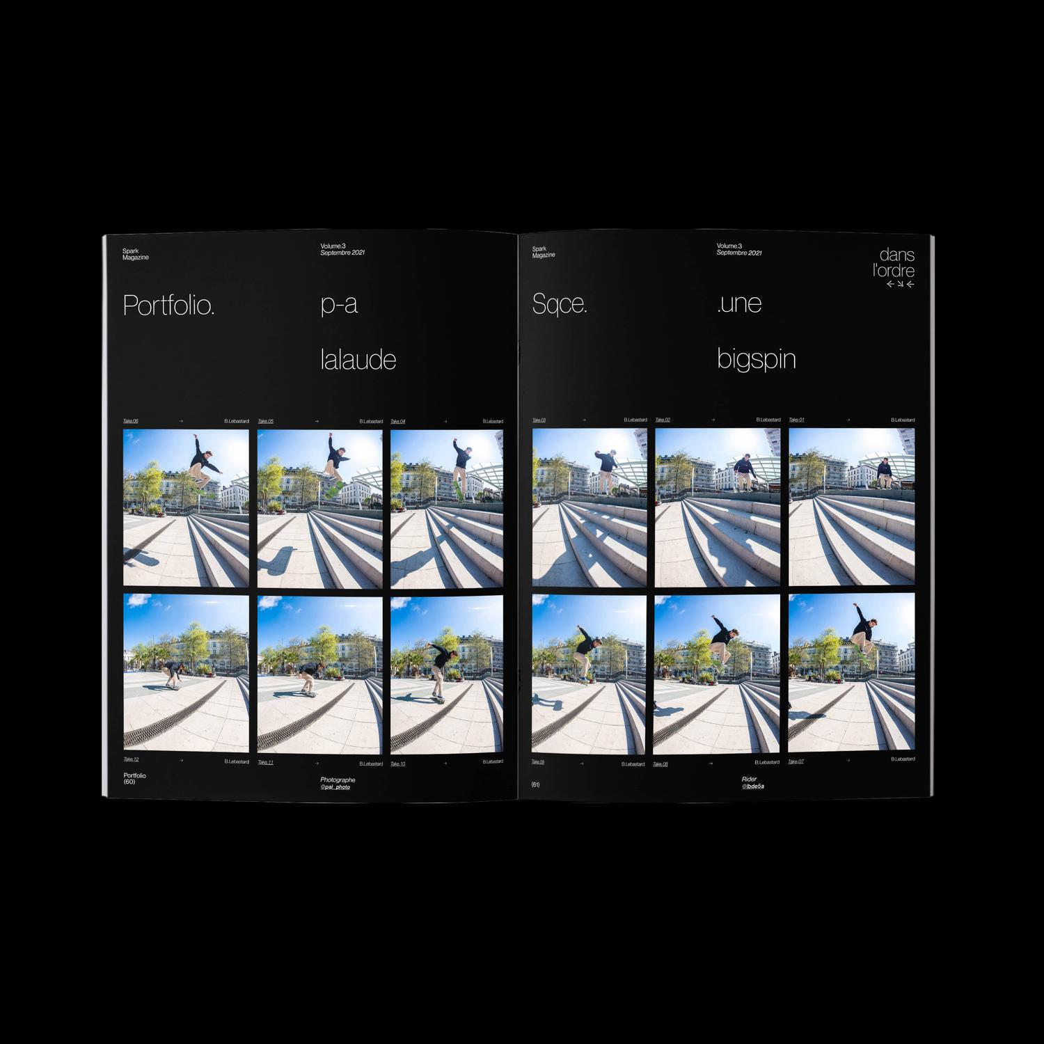 Le magazine Spark mêle skate, art et photographie. La conception de cette édition découle d’une association avec différents photographes, riders, musiciens, écrivains, plasticiens… ; tous issus d'un univers différent mais avec l’envie de représenter la culture urbaine du Sud-Ouest de la France à travers une collaboration expérimentale mais avant tout sociale.